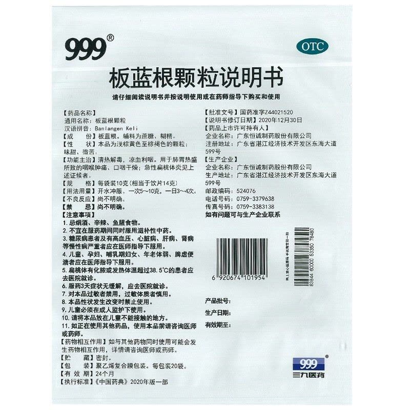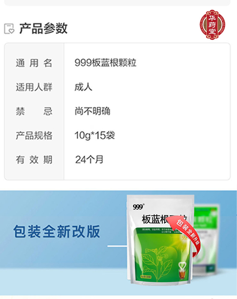 999板蓝根颗粒 咽喉肿痛急性扁桃体炎